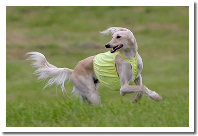 Having tremendous speed, the Saluki is a brilliant desert hunter capable of incredible agility over rough terrain. He was used to course and bring down the gazelle, the fastest of the antelopes. It is recorded that the Pharaohs rode to the chase with their hawks on their wrists and Salukis on the lead. It is also believed the Saluki was used on jackals, foxes, and hares. Salukis were first brought into England in 1840: a bitch owned by Sir Hamilton Smith, a dog in Regents Park Zoological Gardens, and one owned by the Duke of Devonshire at Chatsworth. They were then known as Persian greyhounds since these three came from Persia. During World War I English Army officers stationed in the East brought other specimens home as either prizes of war or the gifts of friendly tribes.